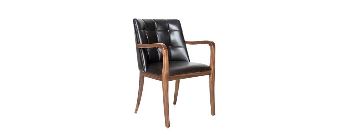 The Alfred Dining Chair is available in your choice of custom fabric or leather upholstery.