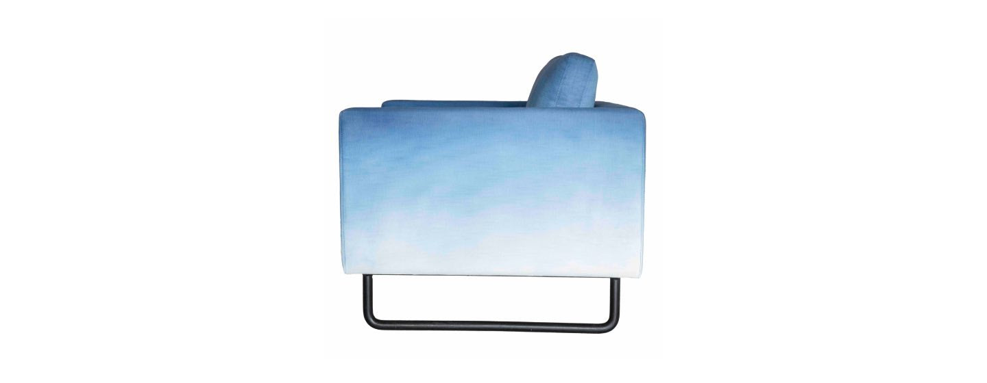 The Box Chair is available in your choice of custom fabric or hand painted linen upholstery.