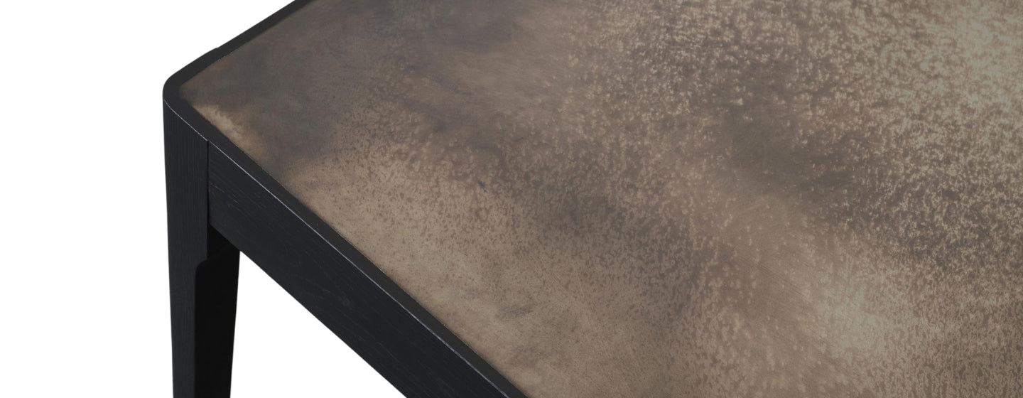 The Brass Topped Dining Table is available in your choice of ash, iroko, oak or walnut with solid wood with antiqued brass top