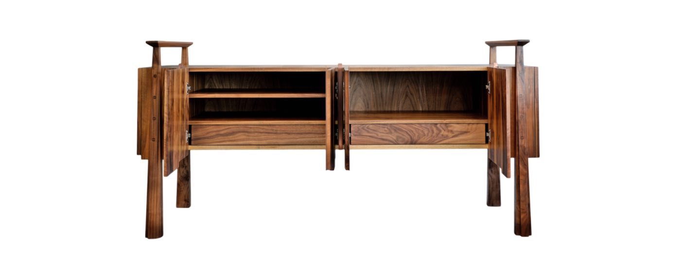 The Cape Container Sideboard is available in your choice of walnut with copper inserts. Limited edition 15
