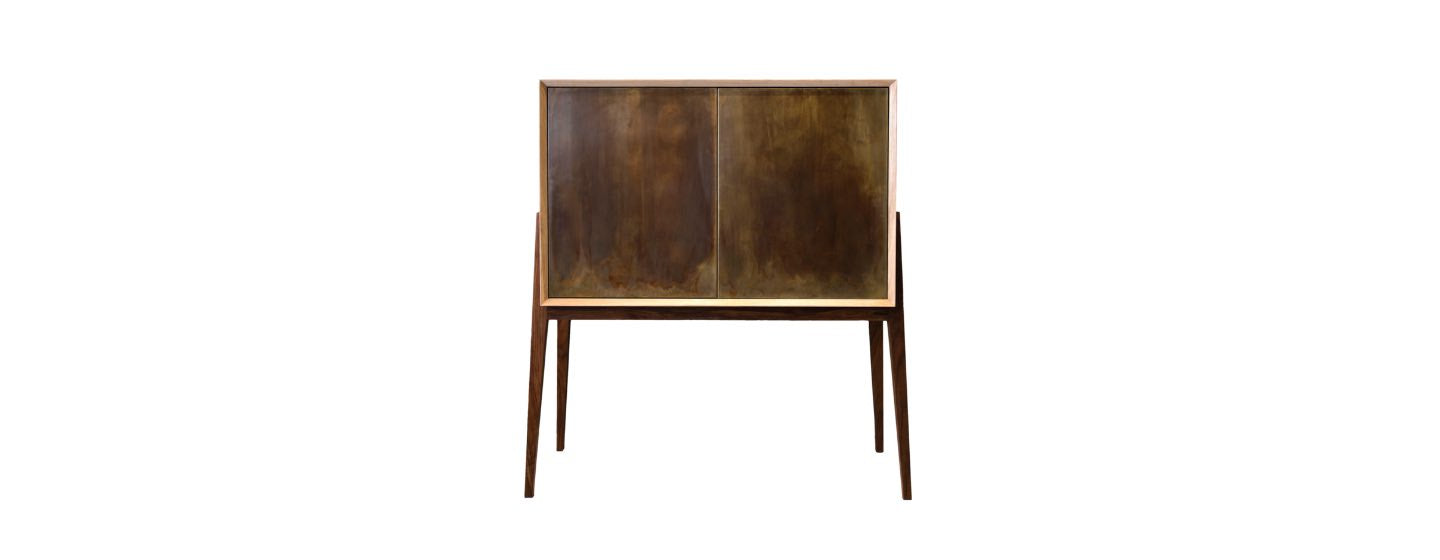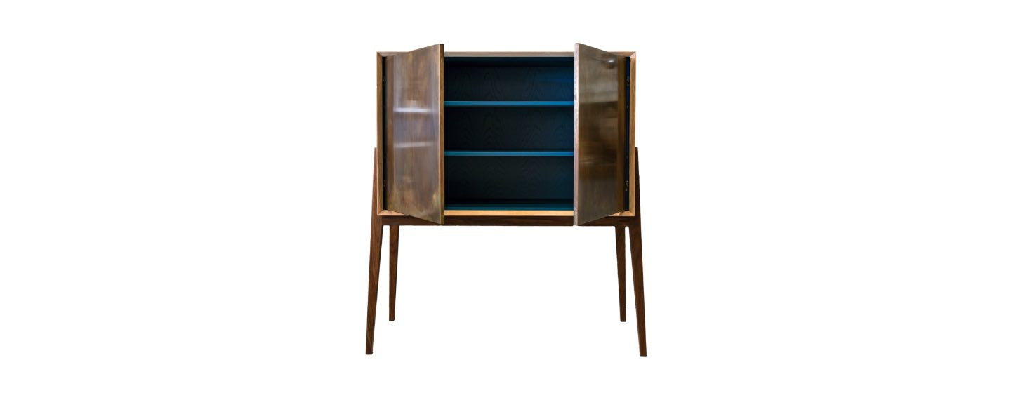 The Dutch Cabinet is available in your choice of oak or walnut with antique brass clad doors.