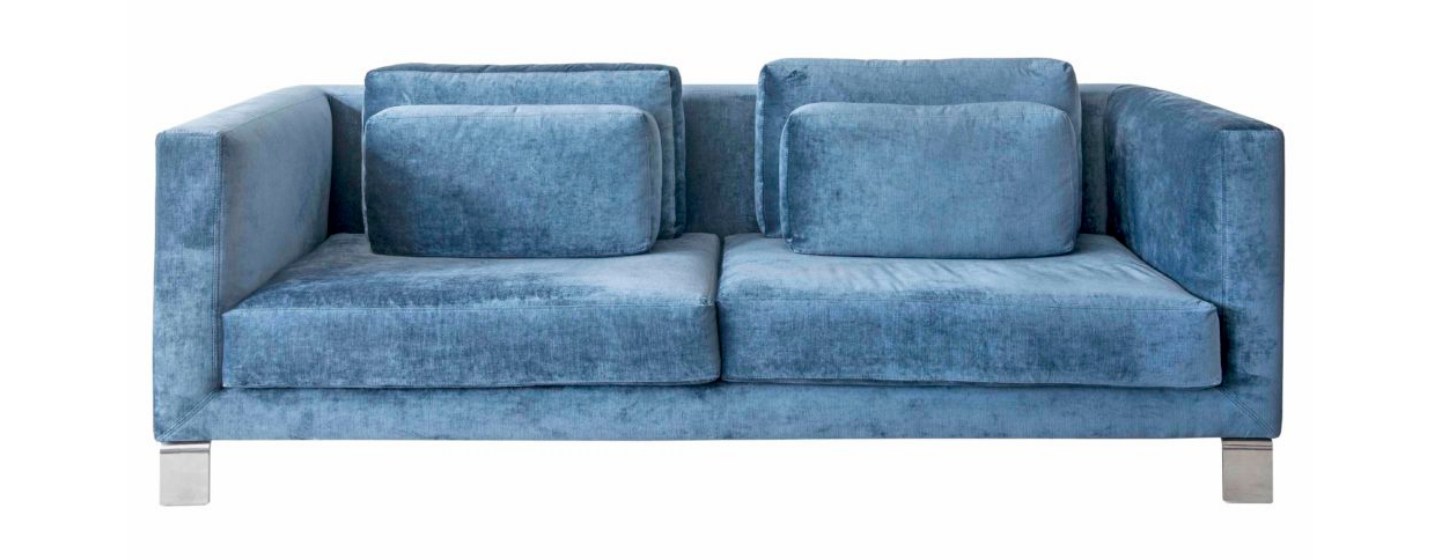 The Monk Sofa is available in your choice of custom color, powder coated or stainless steel metal feet