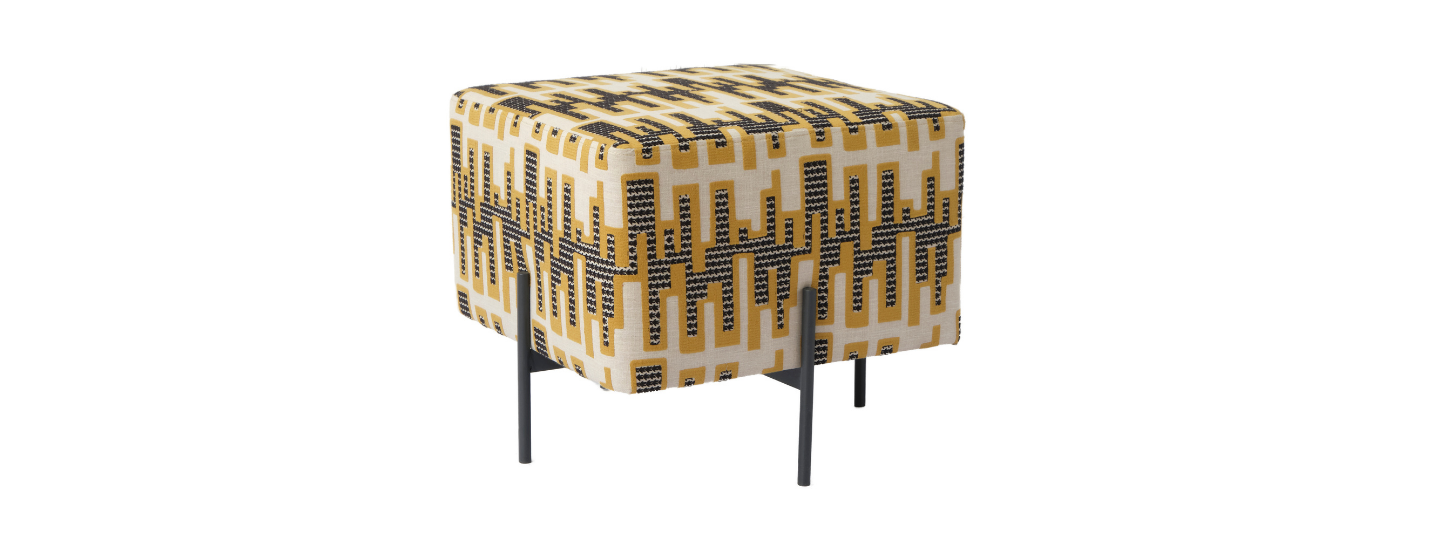 The TipToe Ottoman is available in your choice of custom fabric upholstery.