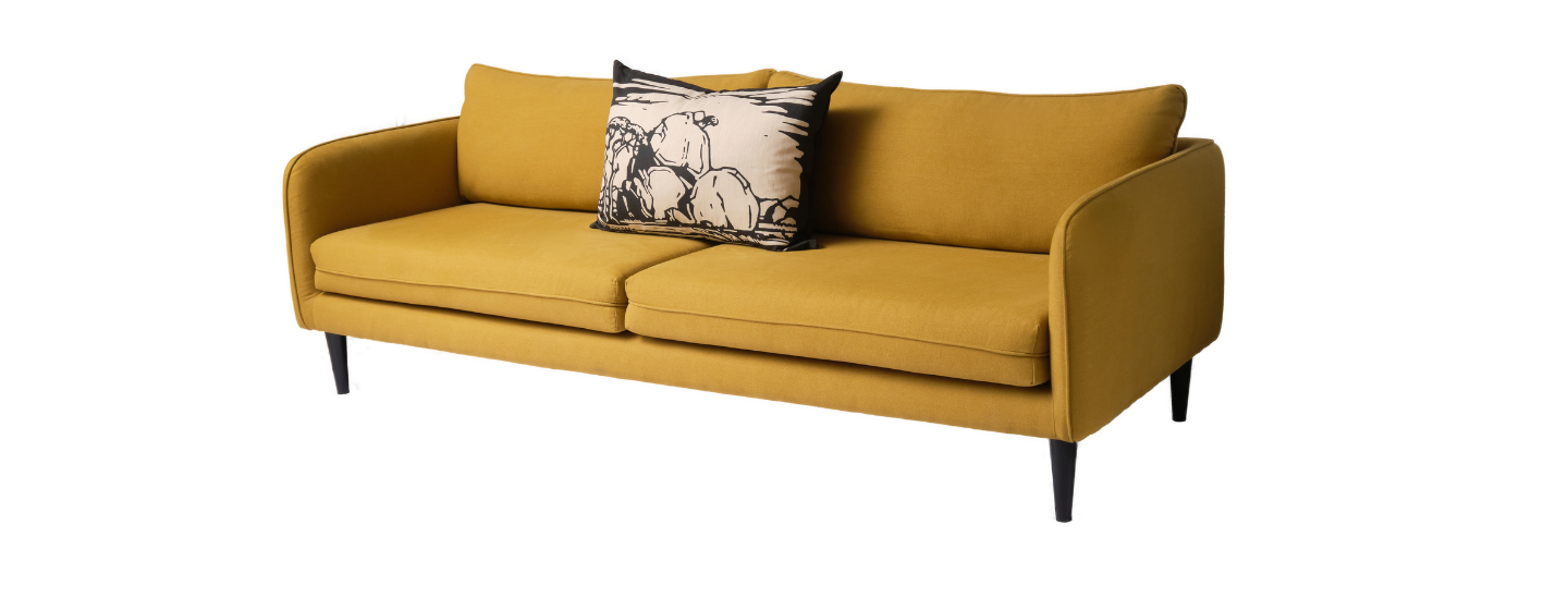 The Victor Sofa is available in either a solid wood frame base or with corner feet. Base and feet are available in your choice of either kiaat, oak or walnut feet.